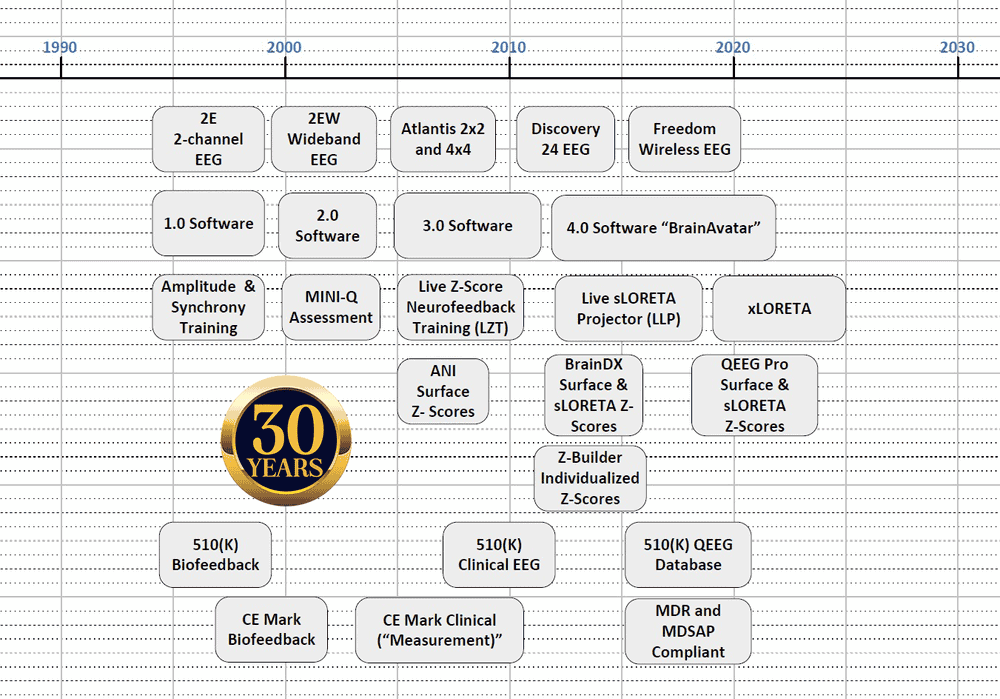 BrainMaster Technologies, Inc. celebrates its 30th anniversary and remains committed to its founding principles of innovation, quality, and customer satisfaction. We continue to follow our original motto, “Make the world a better place today, and make sure we will be here tomorrow.” With a strong foundation in EEG-based brainwave analysis and neurofeedback training, BrainMaster is poised to continue leading the way in the development of cutting-edge solutions for brain health and wellness.
