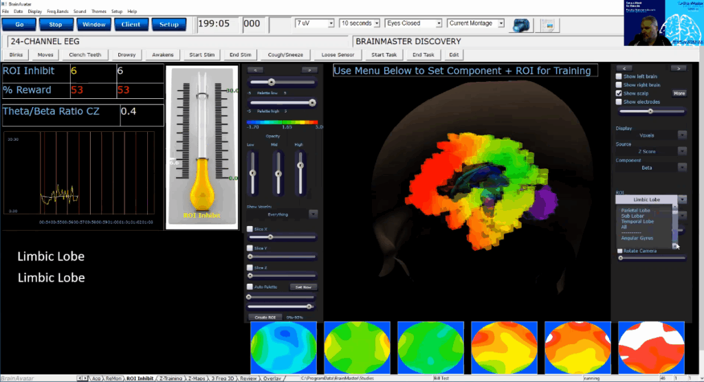 ZNF builds on quantitative EEG (qEEG) foundations from pioneers like E. Roy John, Leslie Prichep, Robert Chabot, Pedro Valdes-Sosa, Roberto Pascual-Marqui, and Robert Thatcher. A key milestone was Collura, Mrklas, and Collura, U.S. Patent 9,706,939 (issued July 18, 2017), titled “Multi-channel, multi-variate whole-head normalization and optimization system using live Z-scores” [20]. This patent details a system processing EEG to generate live Z-scores for metrics like power and connectivity, enabling multivariate proportional feedback via operant conditioning. Developed from 2007 provisional filings, it addresses single-channel limitations, targeting conditions like ADHD and post-concussion syndrome. BrainMaster’s subsequent work (2008–2023) integrated low-resolution electromagnetic tomography (LORETA, sLORETA, xLORETA), normative databases like BrainDx and QEEG Pro, and individualized ZBuilder databases, enhancing precision [8, 9, 10, 11, 12, 13, 14, 23].